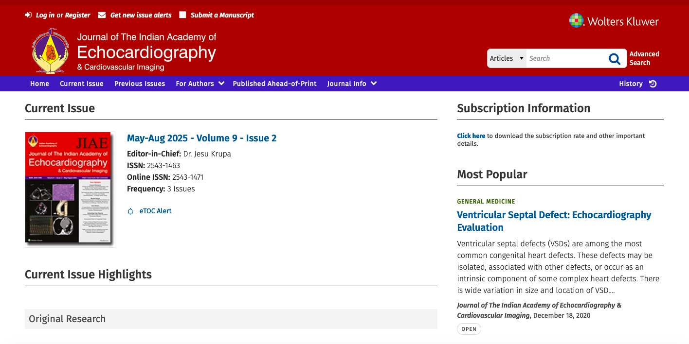 Journal of the Indian Academy of Echocardiography and Cardiovascular Imaging